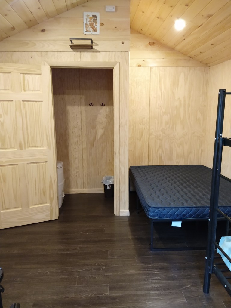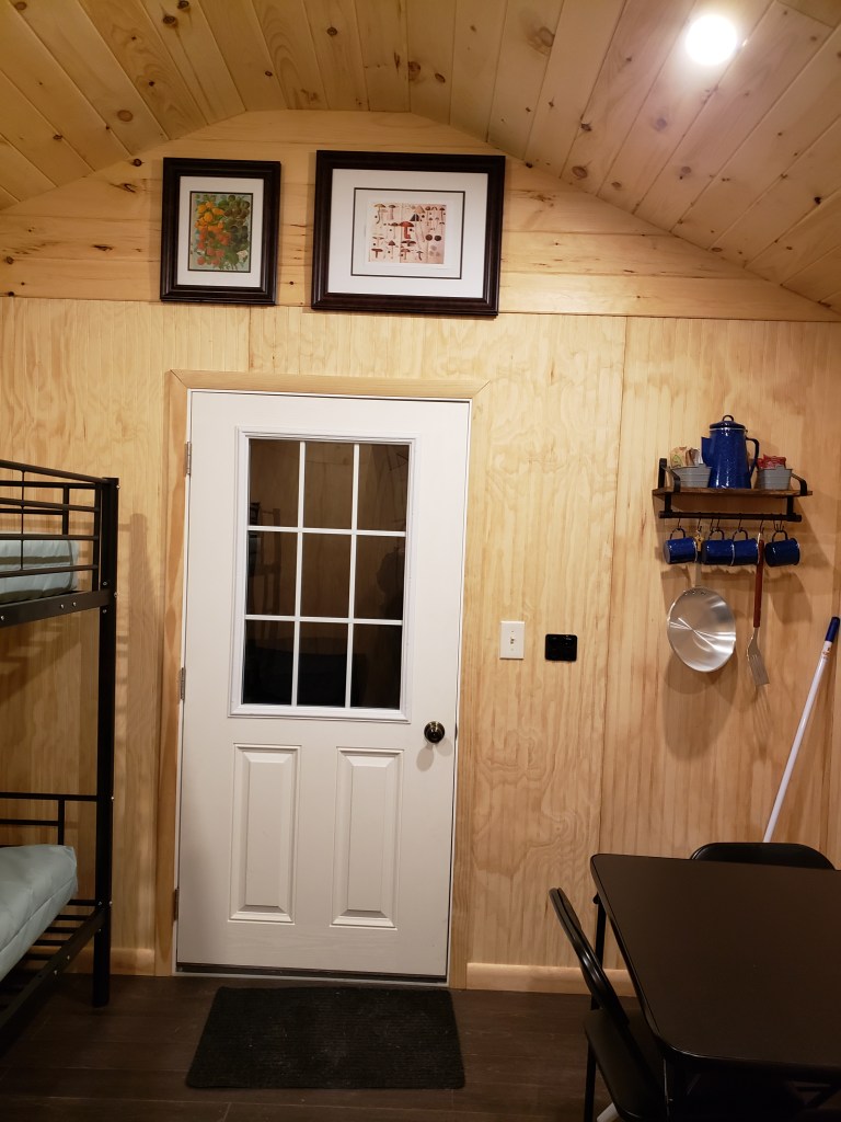 Sleeps up to 4 people. Contains a full sized bed and a set of twin bunk beds.