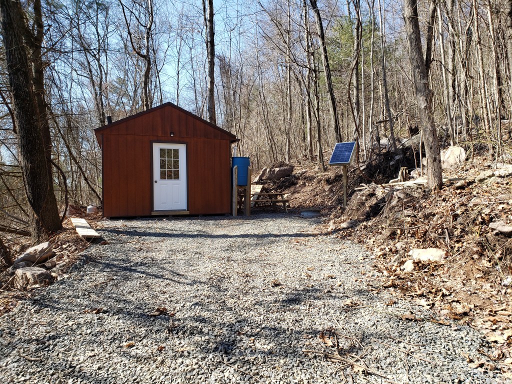 A unique foraging cabin set in a wooded area off-grid solar power and composting toilet. You can cook over the fire pit with included grate, coffee pot and frying pan. wonder through our woods or visit nearby state forests. We are 2 miles from the AOAA park and 20 min. from Knoebel’s amusement park. Supplied is a rain barrel for washing please bring drinking water with you!