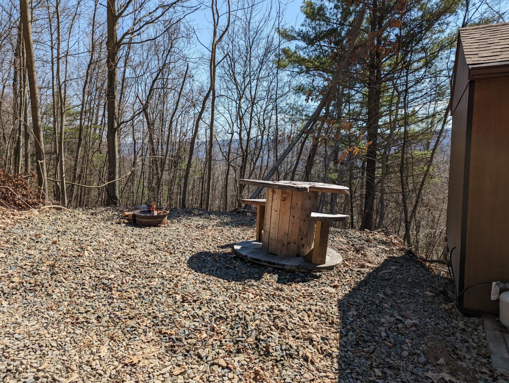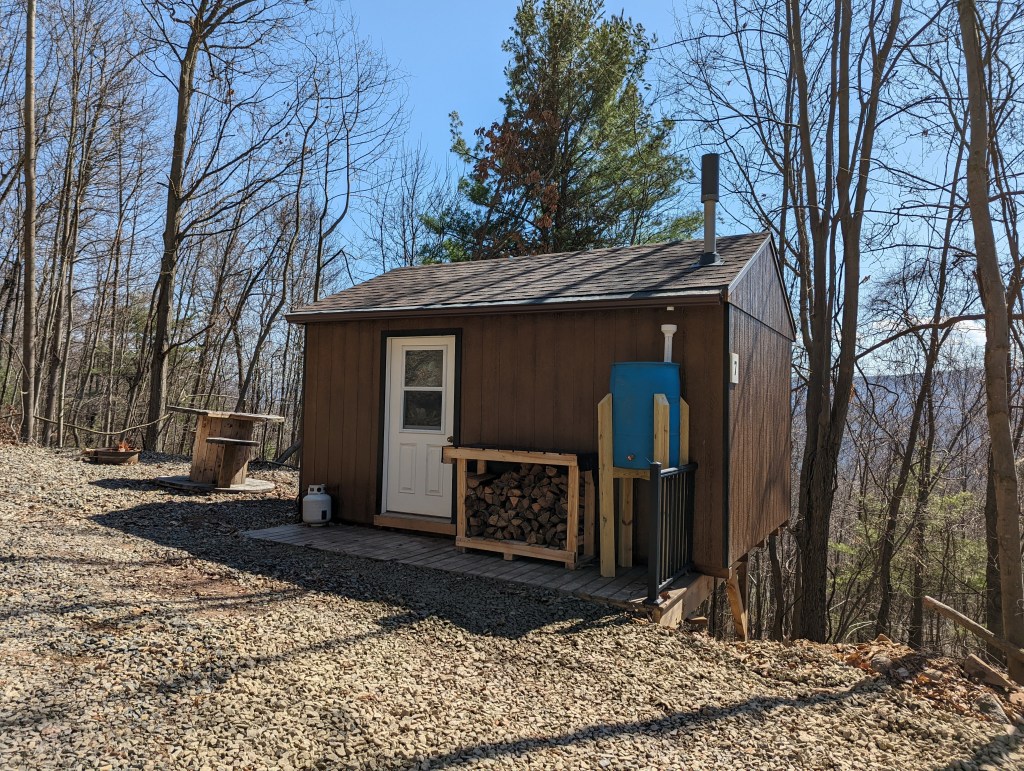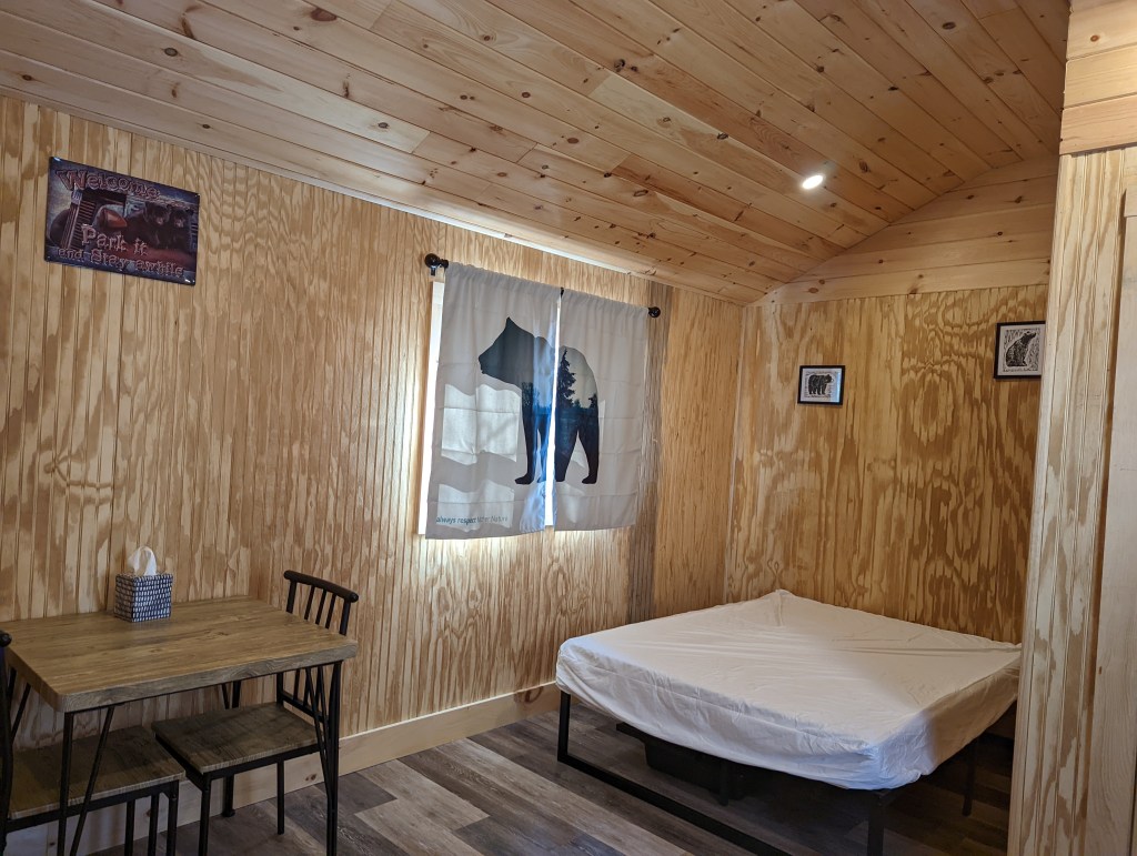 The Bear Den Cabin is a quiet place to relax with a loved one. This peaceful cabin is in a wooded setting with a double bed, fire ring, and 12 volt system for phone charging and lights. Enjoy your evening by the campfire and allow the stress to melt away as you enjoy your needed alone time with someone special.