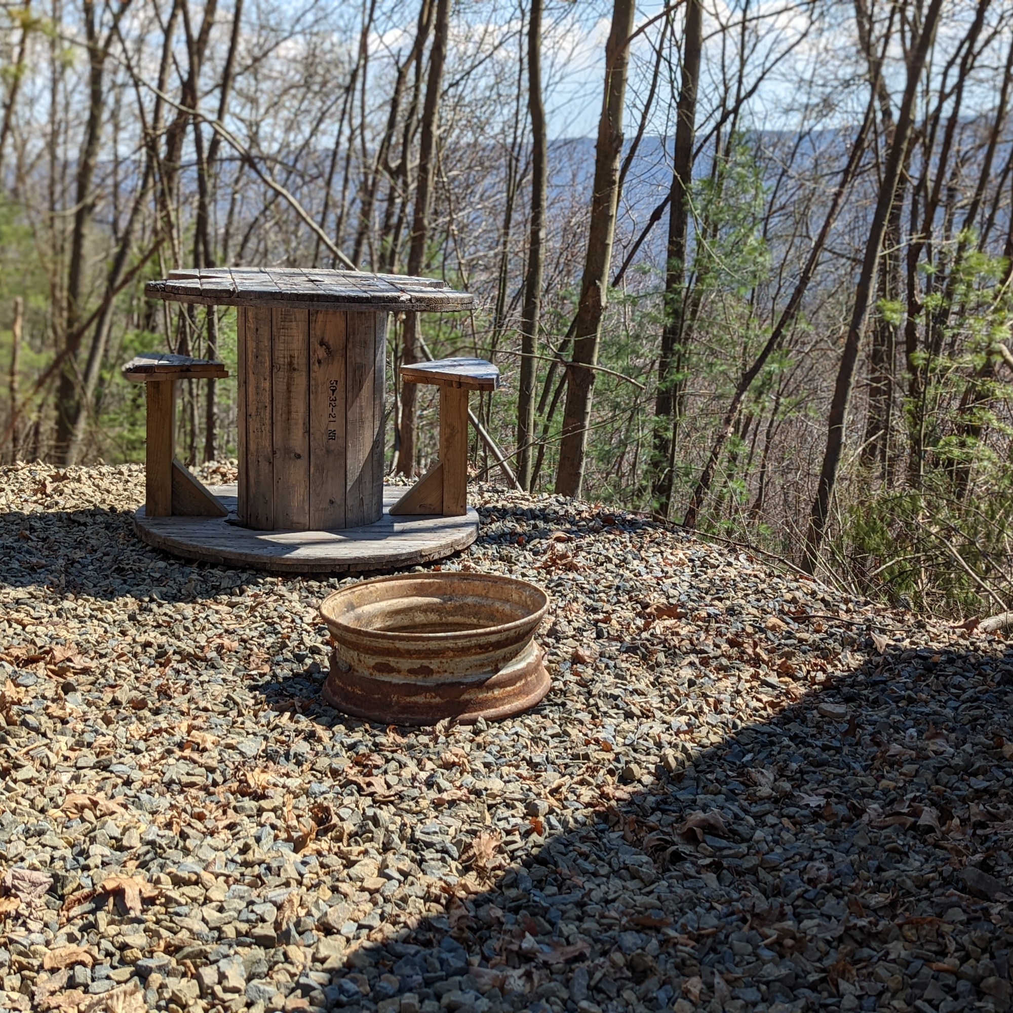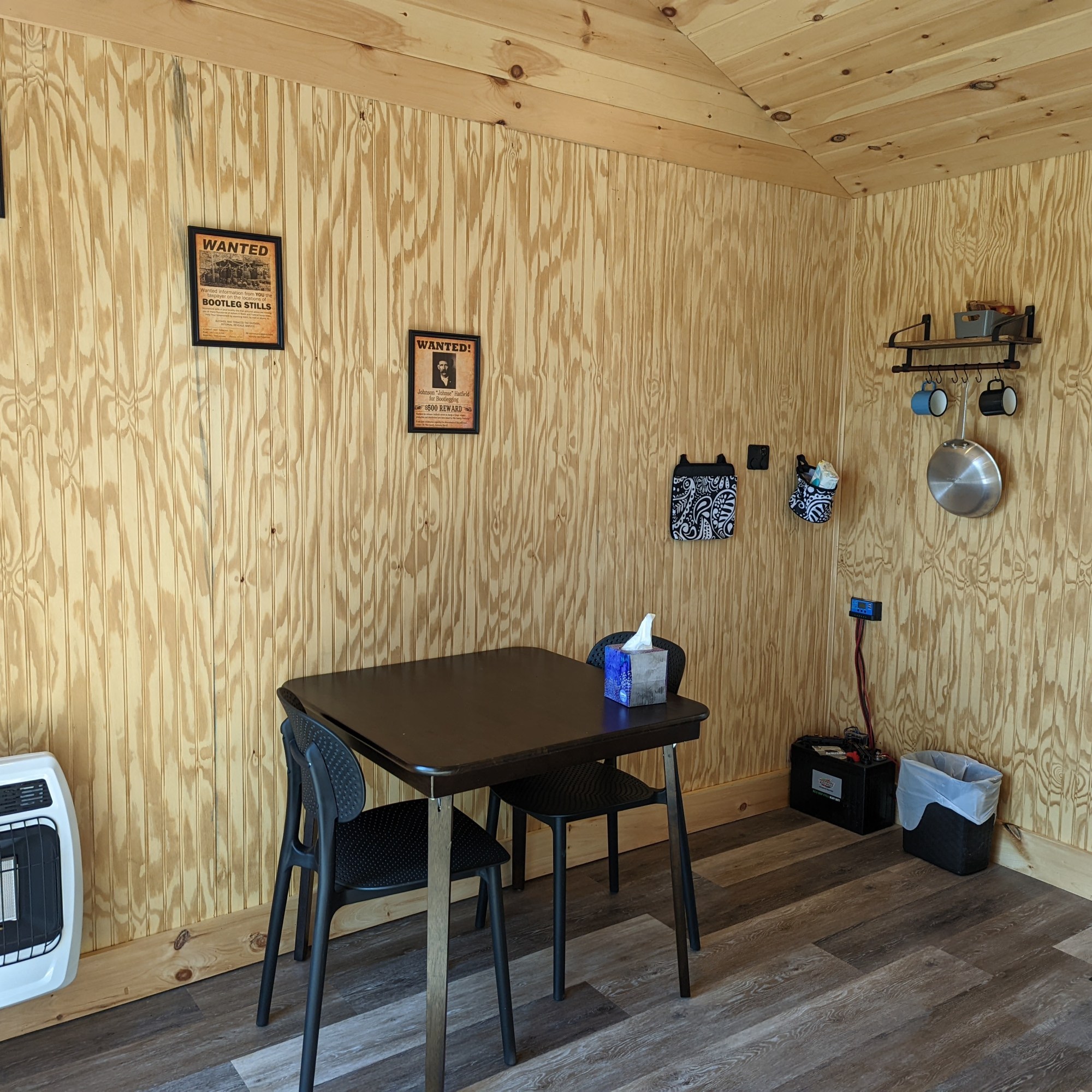 The Moonshiners Cabin is a quiet place to relax with a loved one. This peaceful cabin is in a wooded setting with a double bed, fire ring, and 12 volt system for phone charging and lights. Enjoy your evening by the campfire or on the back deck and allow the stress to melt away as you enjoy your needed alone time with someone special.