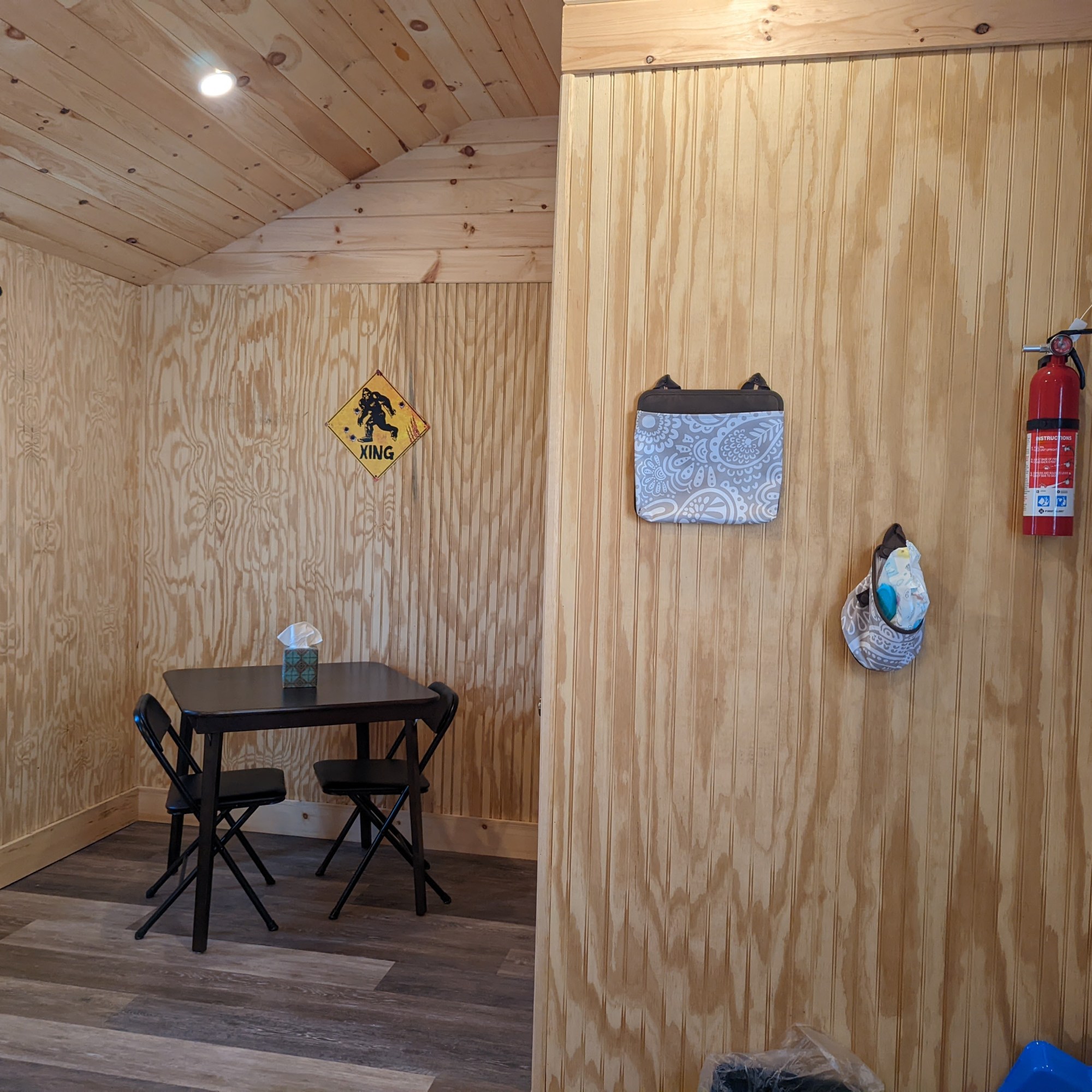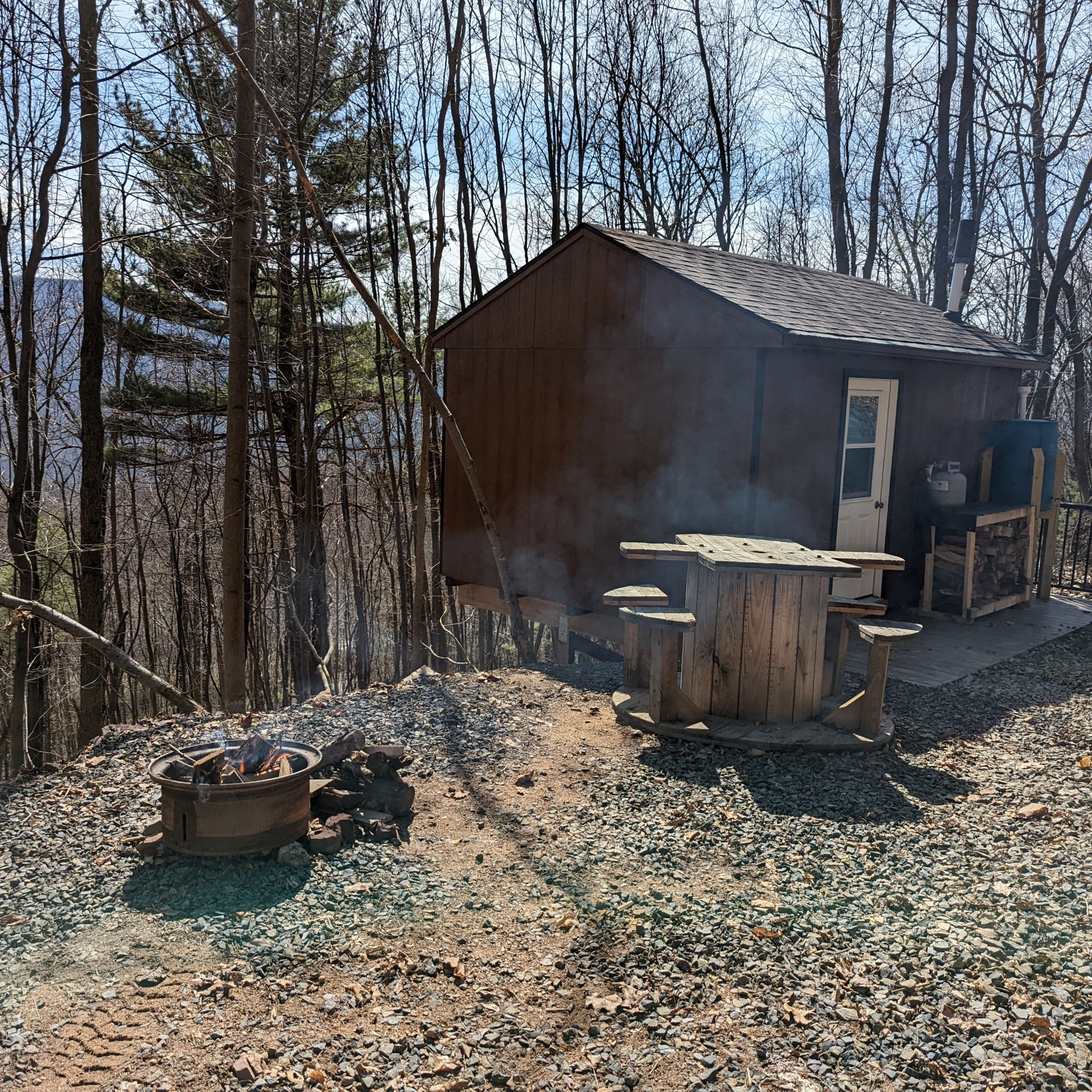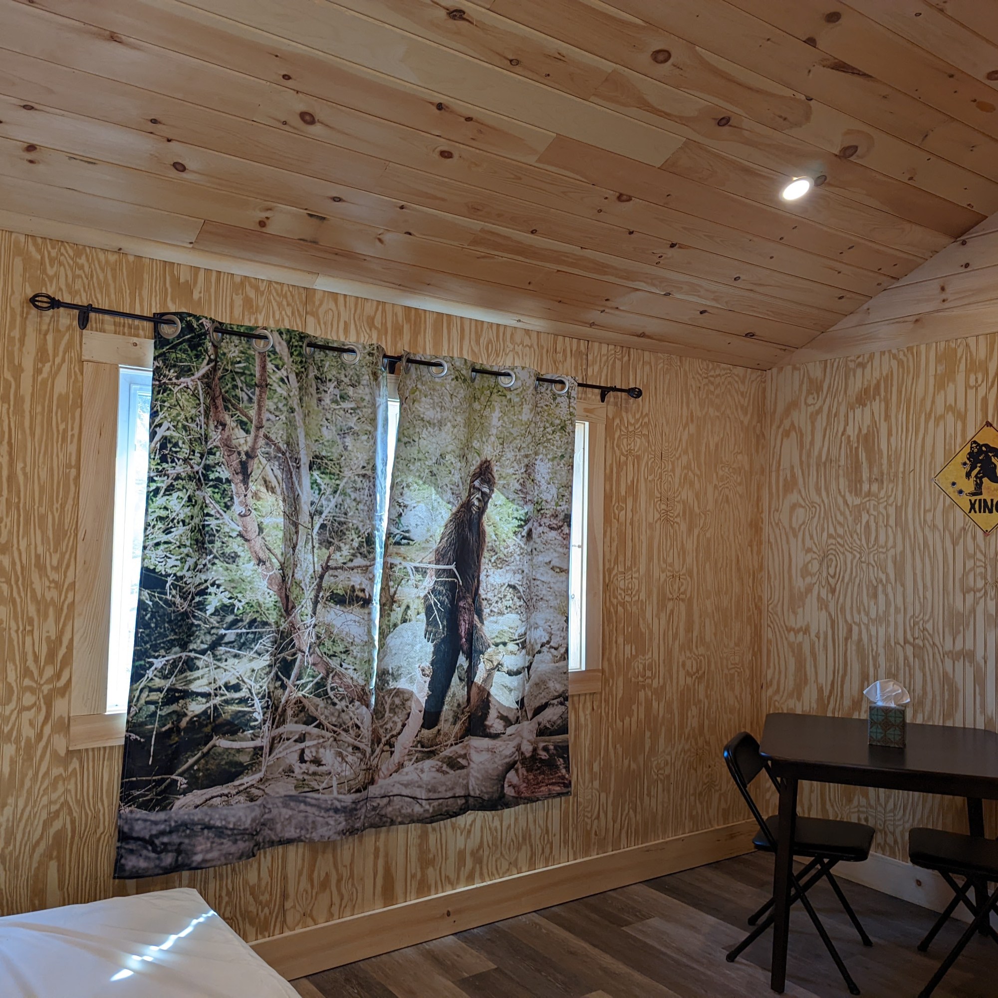 The Sasquatch Cabin is a quiet place to relax with a loved one. This peaceful cabin is in a wooded setting with a double bed, fire ring, and 12 volt system for phone charging and lights. Enjoy your evening by the campfire and allow the stress to melt away as you enjoy your needed alone time with someone special.